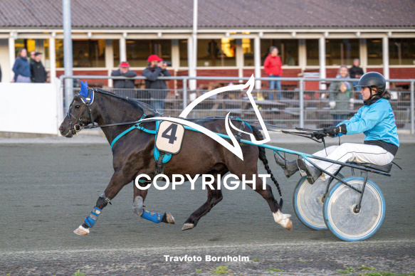- Beskrivelse: Østruplunds Jason med Mathea Jönsson Bornholms Brand Park 19. maj 2023 Fotograf Torben Ager - Travfoto Bornholm