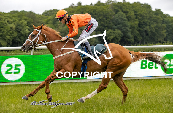 - Beskrivelse: MISS TWENTY med Nicolaj Stott 3. løbs vinder på Klampenborg d. 2023-07-01. Photo: Burt Seeger.