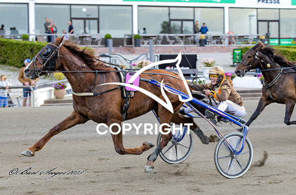 - Billede Beskrivelse: FAKIR DE BEAUVALET med Karina Madsen 10. løbs vinder på Charlottenlund d. 2023-07-04. Photo: Burt Seeger.