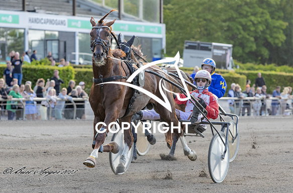 - Billede Beskrivelse: GAUTUT GARDENIA med Mads Petersen 6. løbs vinder af KGB:s Minne, indl. afd. 2023, på Charlottenlund d. 2023-08-04. Photo: Burt Seeger.