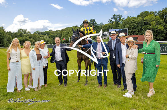 - Billede Beskrivelse: LORD MOUNTBATTEN med Carlos Lopez 2. løbs vinder på Klampenborg d. 2023-08-05. Photo: Burt Seeger.
