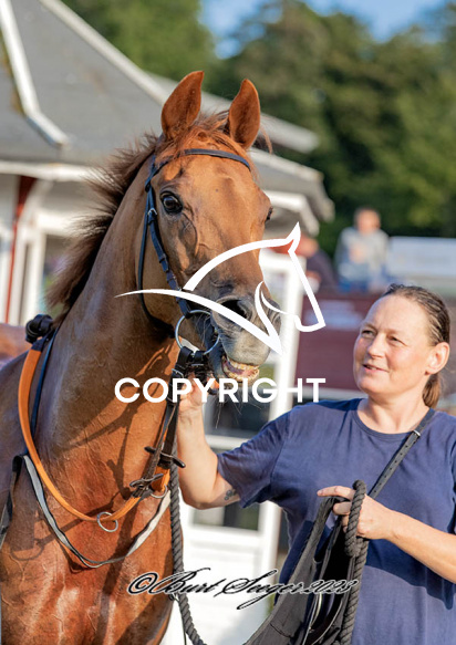 - Billede Beskrivelse: EASTER SURPRISE med Jacob Johansen 1. løbs vinder på Klampenborg d. 2023-08-18. Photo: Burt Seeger.