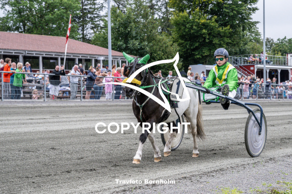 - Beskrivelse: Hjortsagers Trisse med Frederik Mundus Nielsen Bornholms Brand Park 20 august 2023 Fotograf Torben Ager - Travfoto Bornholm