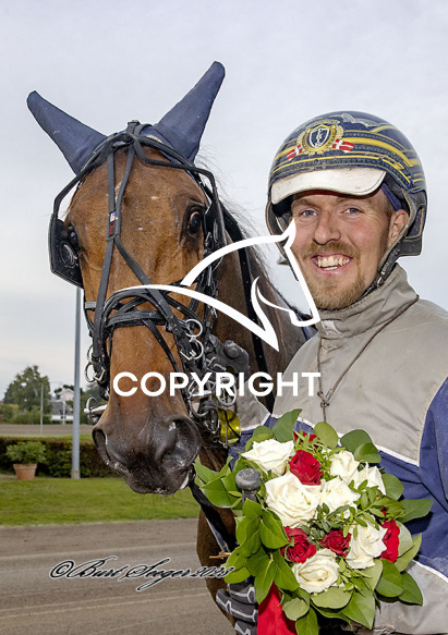 - Billede Beskrivelse: HOLGER J J med Ulrik Christoffersen 9. løbs vinder på Charlottenlund d. 2023-08-25. Photo: Burt Seeger.