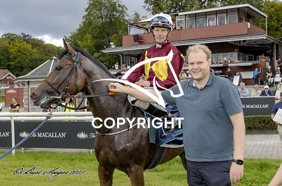 - Billede Beskrivelse: KRYSTLE med Jacob Johansen 1. løb på Klampenborg d. 2023-08-26. Photo: Burt Seeger.