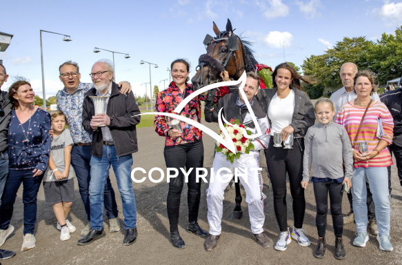 - Beskrivelse: HARPER med Michael Lønborg 8. løbs vinder af Dansk Hoppe Derby 2023 - Gr. I, Nat. på Charlottenlund d. 2023-08-26 Photo: Burt Seeger.