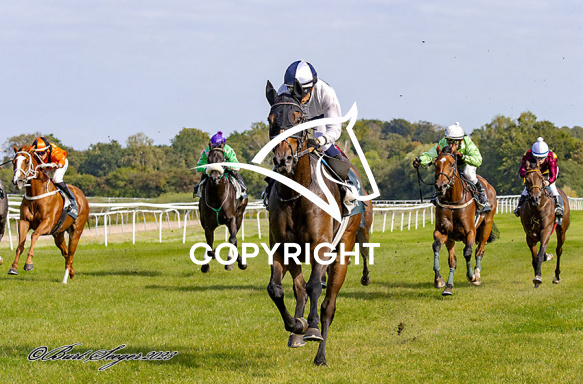 - Beskrivelse: CHECKERED NINJA med Carlos Lopez 5. løb vinder på Klampenborg d. 2023-09-16. Photo: Burt Seeger.
