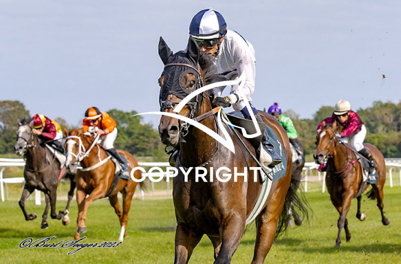 - Beskrivelse: CHECKERED NINJA med Carlos Lopez 5. løb vinder på Klampenborg d. 2023-09-16. Photo: Burt Seeger.