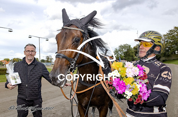 - Billede Beskrivelse: JUST HANS med Bent Svendsen 2. løbs vinder af KriteriumsPrøve-2023, på Charlottenlund d. 2023-09-22. Photo: Burt Seeger.