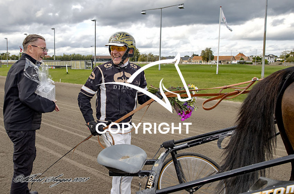 - Billede Beskrivelse: JUST HANS med Bent Svendsen 2. løbs vinder af KriteriumsPrøve-2023, på Charlottenlund d. 2023-09-22. Photo: Burt Seeger.