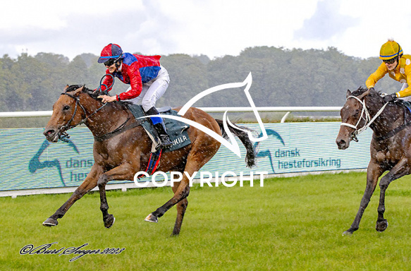 - Billede Beskrivelse: SMOOTH ESCAPE med Lise Vest 7. løb vinder af HENDES MAJESTÆT DRONNINGENS ÆRESPRÆMIE 2023, på Klampenborg d. 2023-09-23. Photo: Burt Seeger.