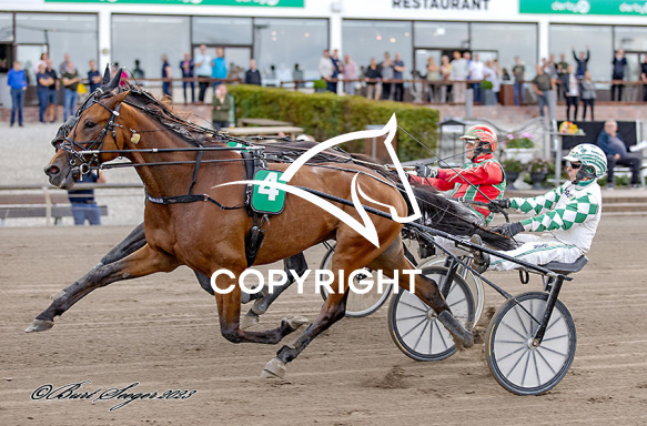 - Beskrivelse: DOROB med Flemming Jensen 4. løbs vinder på Charlottenlund d. 2023-09-29. Photo: Burt Seeger.
