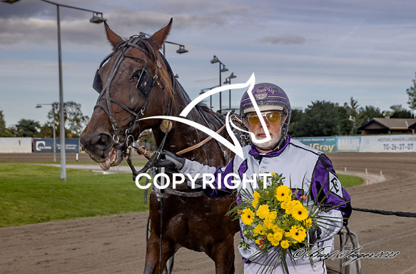 - Beskrivelse: CATO MOSEBO med Flemming Nielsen 11. løbs vinder på Charlottenlund d. 2023-10-08. Photo: Burt Seeger.