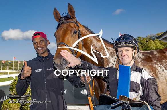 - Billede Beskrivelse: RAY'S MOON med Jacob Johansen 5. løb vinder af St. Leger 2023, på Klampenborg d. 2023-09-23. Photo: Burt Seeger.