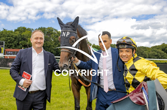 - Billede Beskrivelse: LORD MOUNTBATTEN med Carlos Lopez 2. løbs vinder på Klampenborg d. 2023-08-05. Photo: Burt Seeger.