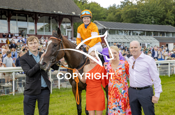 - Billede Beskrivelse: TITANNIA med Ana Pilroth 6. løbs vinder på Klampenborg d. 2023-08-05. Photo: Burt Seeger.