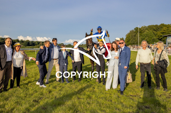 - Billede Beskrivelse: SLAVA UKRAINI med Carlos Lopez 10. løbs vinder af THE MACALLAN DANSK DERBY 2023, på Klampenborg d. 2023-08-05. Photo: Burt Seeger.