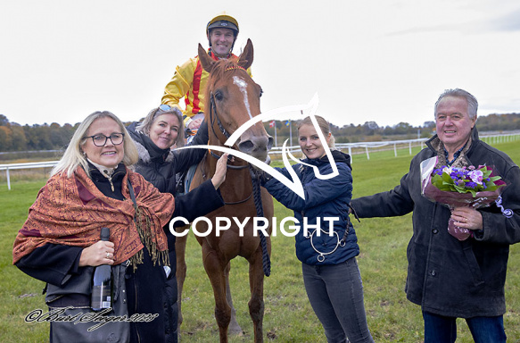 - Billede Beskrivelse: WINGS OF HOPE med Oliver Wilson 1. løb vinder på Klampenborg d. 2023-10-28. Photo: Burt Seeger.