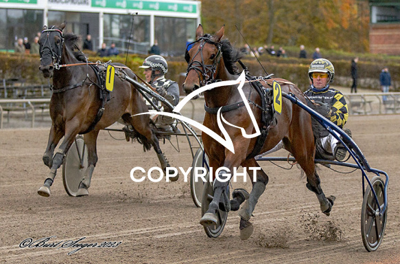- Beskrivelse: ESQUIRE KRONOS med Birger Jørgensen 1. løbs vinder på Charlottenlund d. 2023-11-05. Photo: Burt Seeger.