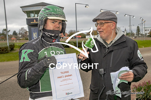 - Beskrivelse: Nicklas Korfitsen med Børge Vang Christensens mindelegat på Charlottenlund d. 2023-11-05. Photo: Burt Seeger.