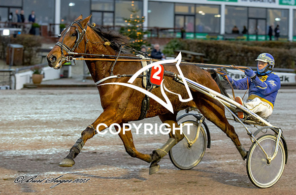 - Billede Beskrivelse: HOLGER J J med Preben Kjærsgaard 3. løbs vinder på Charlottenlund d. 2023-12-10. Photo: Burt Seeger.
