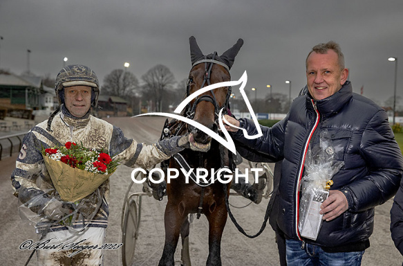 - Billede Beskrivelse: KNOCK ON WOOD med Jörgen Sjunnesson 6. løbs vinder på Charlottenlund d. 2023-12-10. Photo: Burt Seeger.