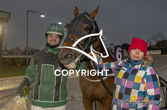 - Billede Beskrivelse: GAUGUIN med Steffen Christiansen 8. løbs vinder på Charlottenlund d. 2023-12-10. Photo: Burt Seeger.