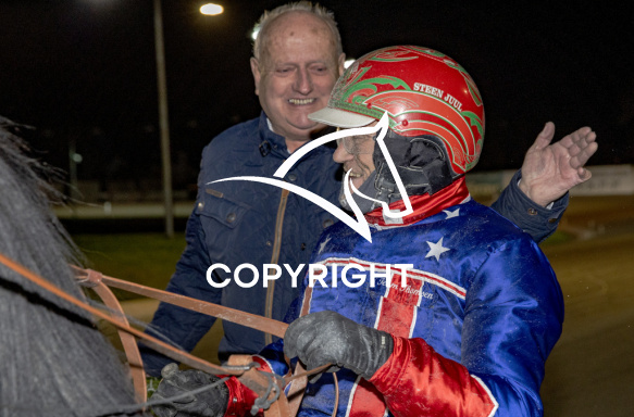 - Billede Beskrivelse: HANDS UP CASH med Steen Juul 5. løbs vinder på Charlottenlund d. 2023-12-22. Photo: Burt Seeger.