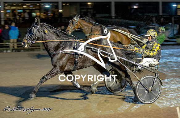- Billede Beskrivelse: FREIHERR FAUST med Birger Jørgensen 6. løbs vinder på Charlottenlund d. 2024-01-26. Photo: Burt Seeger.