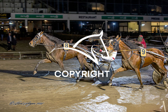 - Billede Beskrivelse: VICTORIA L L med Bengt Olsson 7. løbs vinder på Charlottenlund d. 2024-02-16. Photo: Burt Seeger.