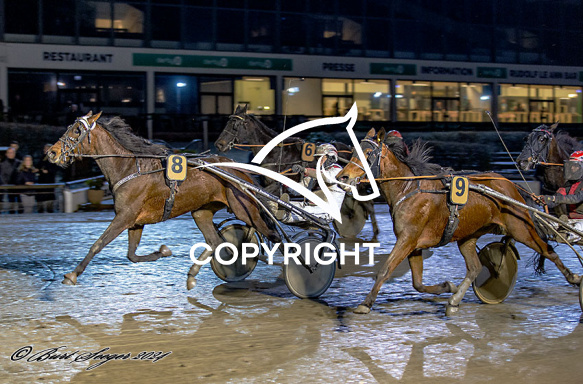 - Billede Beskrivelse: VICTORIA L L med Bengt Olsson 7. løbs vinder på Charlottenlund d. 2024-02-16. Photo: Burt Seeger.
