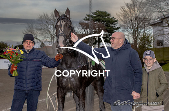 - Billede Beskrivelse: KOHKAHYCUMEST med Steen Juul 9. løbs vinder på Charlottenlund d. 2024-02-25. Photo: Burt Seeger.