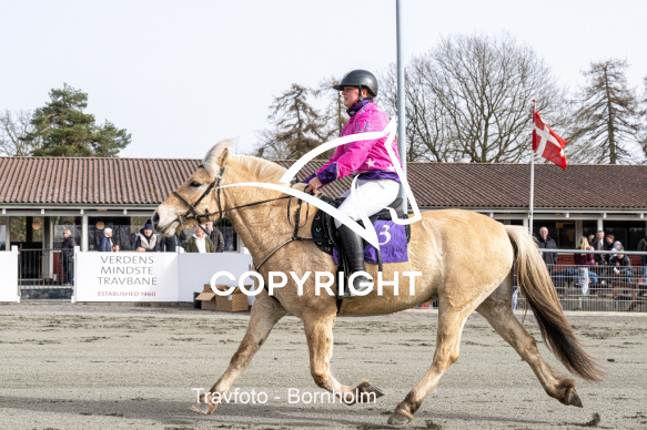 - Beskrivelse: Skovgærets Baldo med Laura Kofod Bager Bornholms Brand Park 30 marts 2024 Fotograf Torben Ager - Travfoto Bornholm