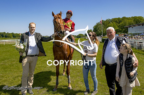 - Beskrivelse: GREAT WISH med Elione Chaves 2. løbs vinder på Klampenborg d. 2024-05-18. Photo: Burt Seeger.