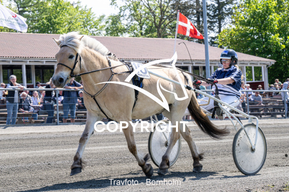 - Beskrivelse: Skovgærets Baldo med Julie Sjøholm Jensen Bornholms Brand Park 20 maj 2024 Fotograf Torben Ager - Travfoto Bornholm