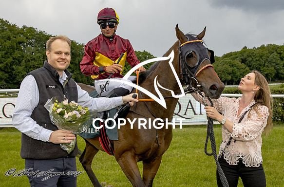 - Billede Beskrivelse: BIG BASTIAN med Elione Chaves 2. løbs vinder på Klampenborg d. 2024-06-07. Photo: Burt Seeger.