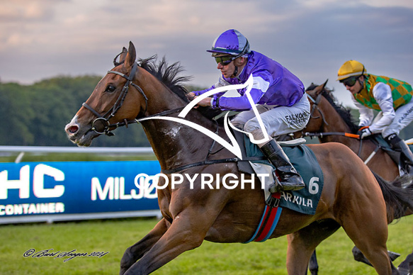- Billede Beskrivelse: SPINOZA med Jacob Johansen 8. løbs vinder på Klampenborg d. 2024-06-07. Photo: Burt Seeger.