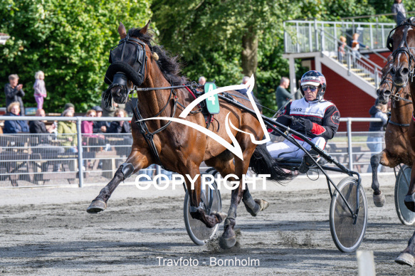 - Beskrivelse: Frøns Hjortshøj med Niels Kristian Hansen Bornholms Brand Park 12 juni 2024 Fotograf Torben Ager - Travfoto Bornholm