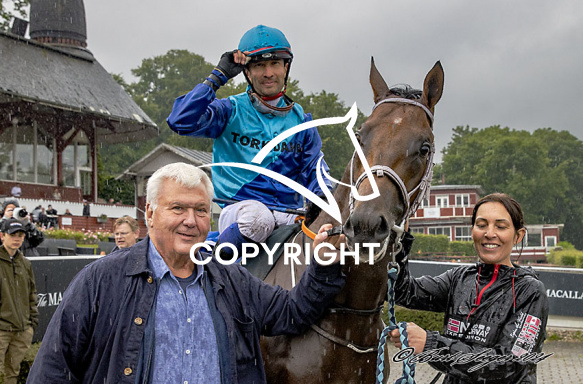 - Beskrivelse: SAMSON TORKDAHL med MAIKEL NARVAEZ BRAVO 1. løbs vinder på Klampenborg d. 2024-06-15. Photo: Burt Seeger.