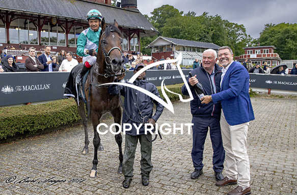 - Billede Beskrivelse: IRISH FIRE med Carlos Lopez 7. løbs vinder på Klampenborg d. 2024-06-15. Photo: Burt Seeger.