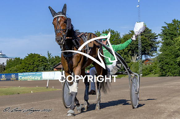 - Billede Beskrivelse: KASH SHADOW med Rene Kjær 7. løbs vinder på Charlottenlund d. 2024-06-25. Photo: Burt Seeger.