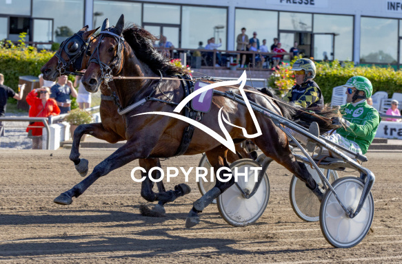 - Billede Beskrivelse: KING LEGEND med Rene Kjær 8. løbs vinder på Charlottenlund d. 2024-06-25. Photo: Burt Seeger.