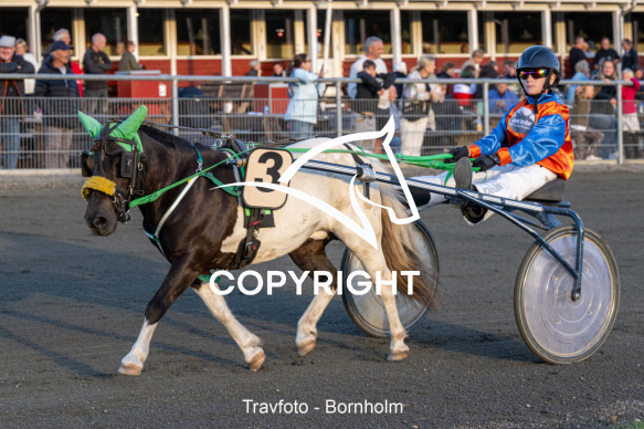 - Beskrivelse: Hjortagers Trisse med Tilde Mundus Nielsen Bornholms Brand Park 3 juli 2024 Fotograf Torben Ager - Travfoto Bornholm
