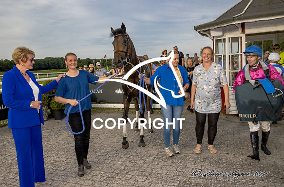 - Beskrivelse: GARLIC med Oliver Wilson 4. løbs vinder af DE 5 STJERNER DERBY TRIAL STAKES 2024, på Klampenborg d. 2024-07-12. Photo: Burt Seeger.