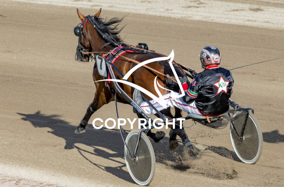 - Billede Beskrivelse: ICEBAHN med Anders F. Jensen i 5. løb på Charlottenlund d. 2024-07-07. Photo: Burt Seeger.