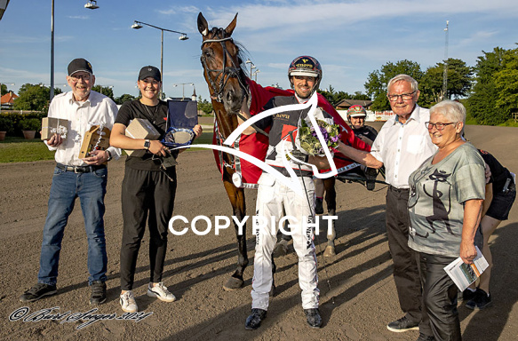 - Billede Beskrivelse: HARPER med Michael Lønborg 6. løbs vinder af Taroks Mindeløb 2024, på Charlottenlund d. 2024-07-21. Photo: Burt Seeger.