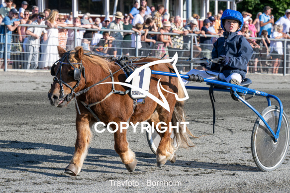 - Beskrivelse: Basse med Mikkel Alex Frøhlich Nielsen Bornholms Brand Park 23 juli 2024 Fotograf Torben Ager - Travfoto Bornholm