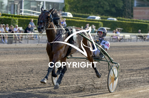 - Beskrivelse: HARPER med Michael Lønborg 6. løbs vinder af Taroks Mindeløb 2024, på Charlottenlund d. 2024-07-21. Photo: Burt Seeger.