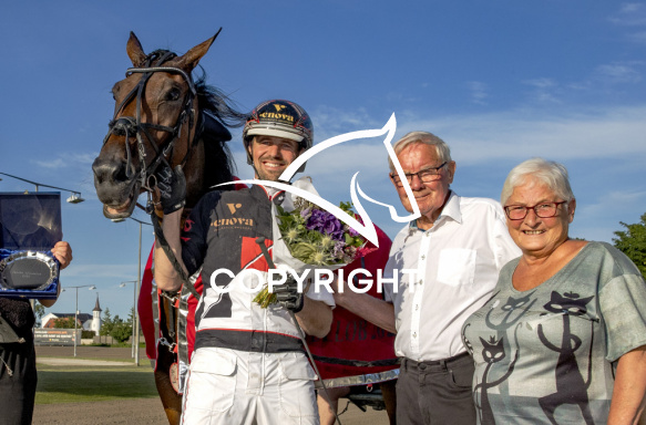 - Billede Beskrivelse: HARPER med Michael Lønborg 6. løbs vinder af Taroks Mindeløb 2024, på Charlottenlund d. 2024-07-21. Photo: Burt Seeger.