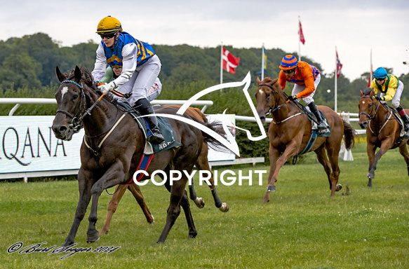 - Beskrivelse: SOUP OR SONIC med Malin Holmberg 2. løbs vinder på Klampenborg d. 2024-08-016. Photo: Burt Seeger.